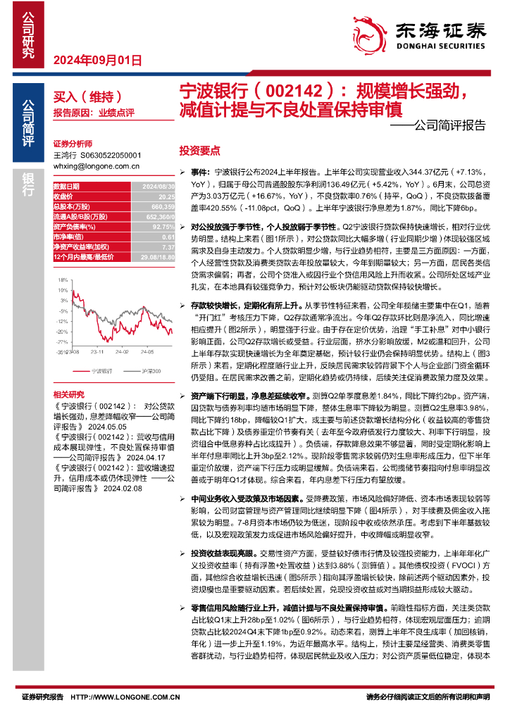 东海证券:宁波银行(002142)-公司简评报告:规模增长强劲,减值计提与不良处置保持审慎.pdf
