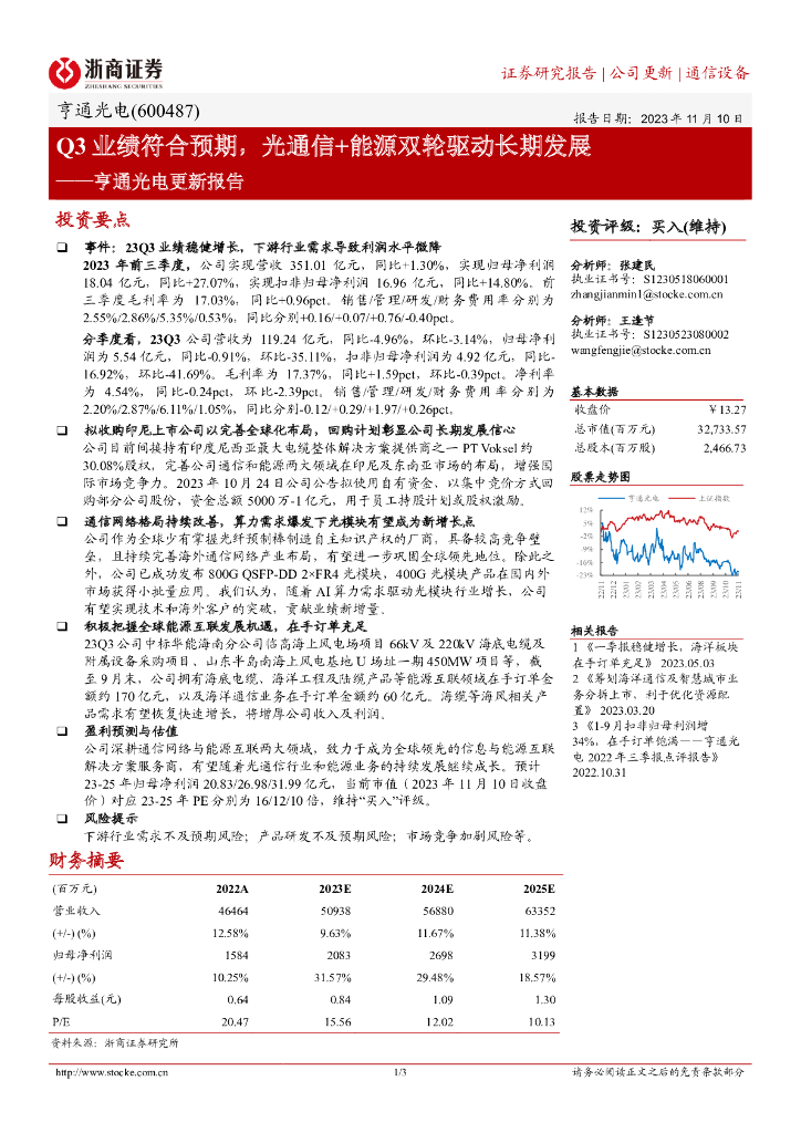 浙商证券:亨通光电(600487)-Q3业绩符合预期,光通信+能源双轮驱动长期发展.pdf