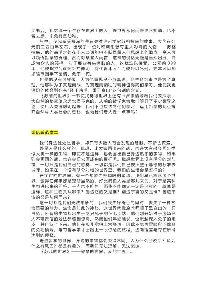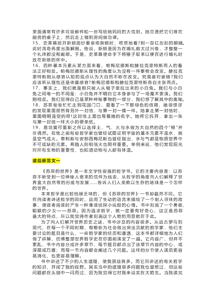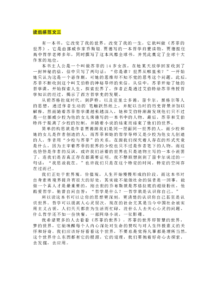 36《苏菲的世界》精彩片段+读后感.doc