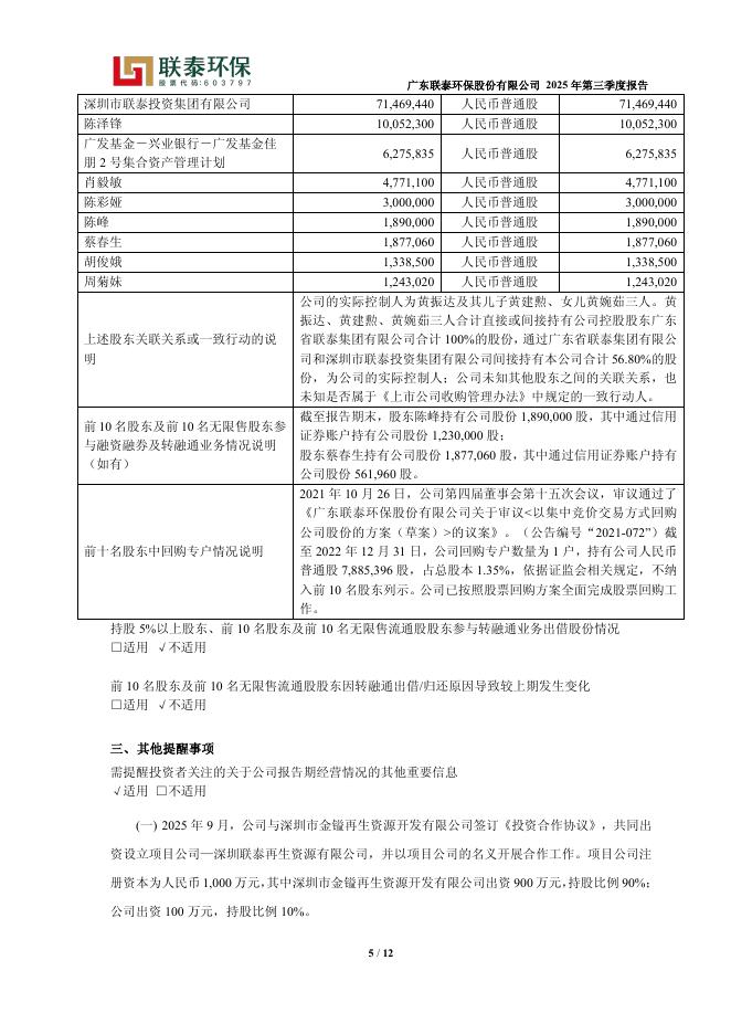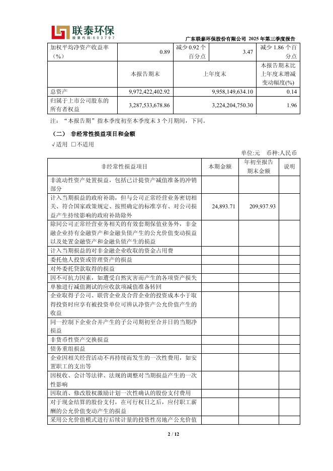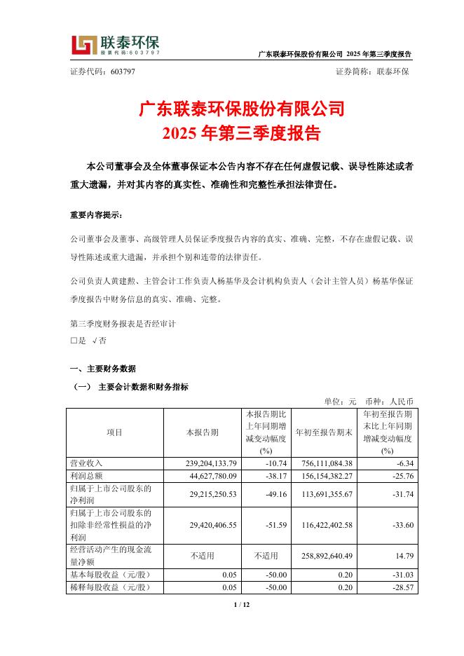 603797-联泰环保:广东联泰环保股份有限公司2025年三季度报告.pdf