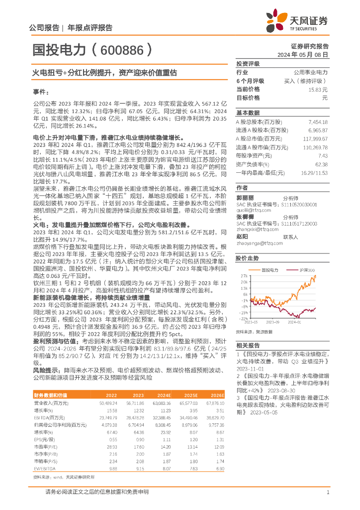 天风证券:国投电力(600886)-火电扭亏+分红比例提升,资产迎来价值重估.pdf