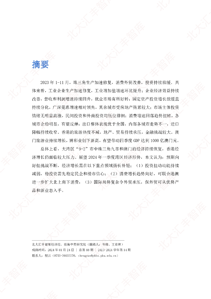 北大汇丰智库:2023年第四季度及全年粤港澳大湾区经济分析报告.pdf