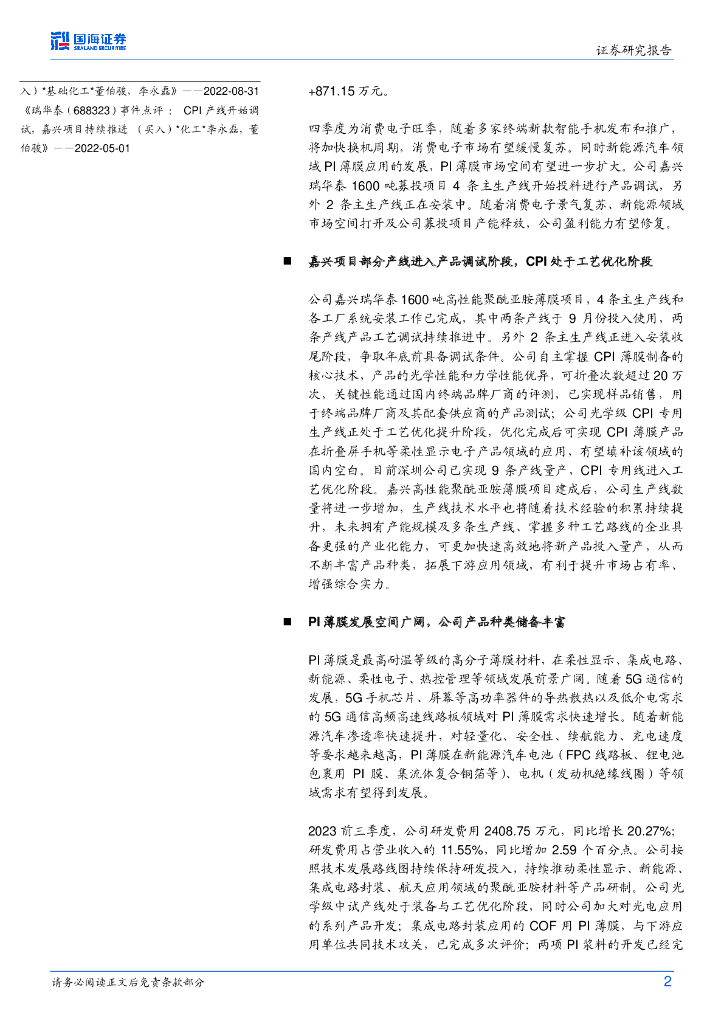 国海证券:瑞华泰(688323)-2023年三季报点评:Q3营收大幅增加,嘉兴项目打开成长空间.pdf