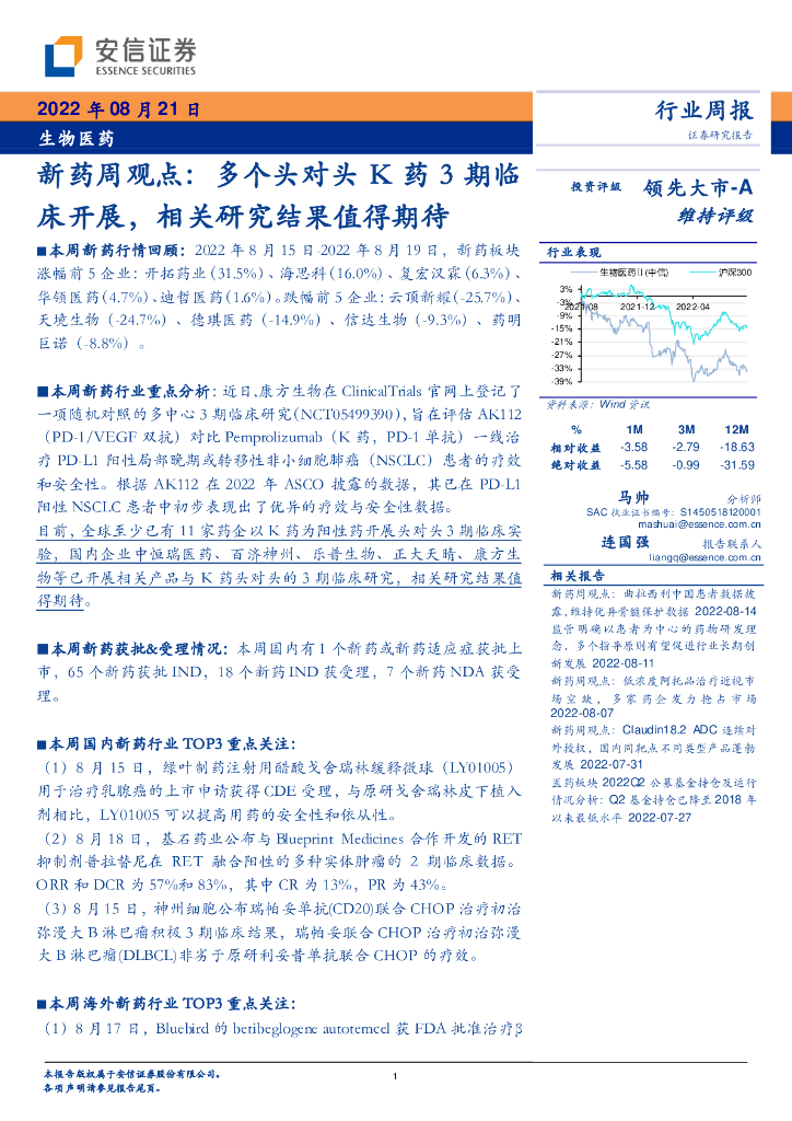 安信证券:新药周观点:多个头对头K药3期临床开展,相关研究结果值得期待.pdf