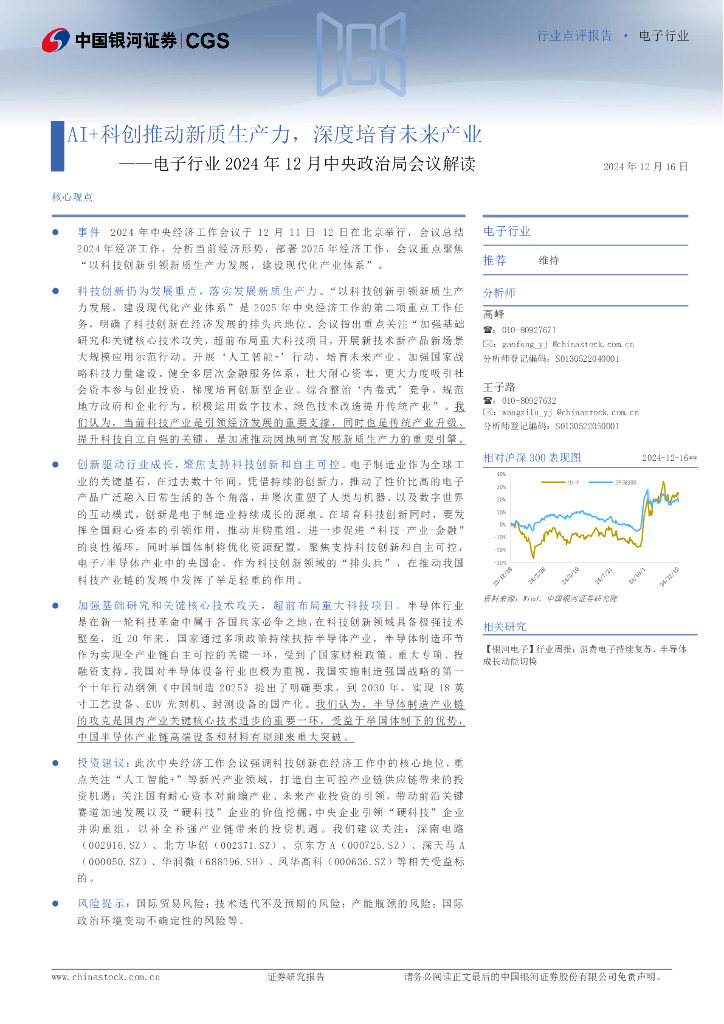 中国银河:电子行业2024年12月中央政治局会议解读:AI+科创推动新质生产力,深度培育未来产业.pdf