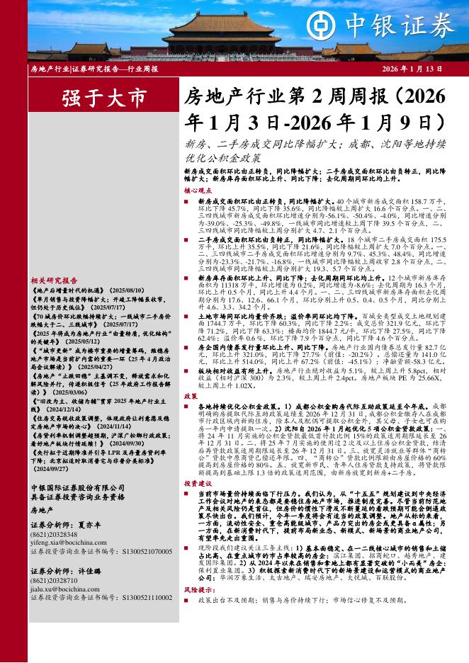 中银证券:房地产行业第2周周报:新房、二手房成交同比降幅扩大;成都、沈阳等地持续优化公积金政策.pdf