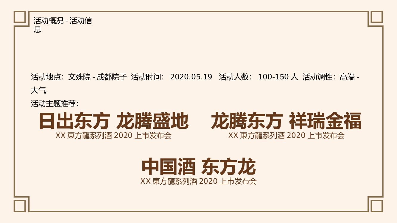 白酒品牌上市发布会(日出东方 龙腾盛地主题)活动策划方案.ppt