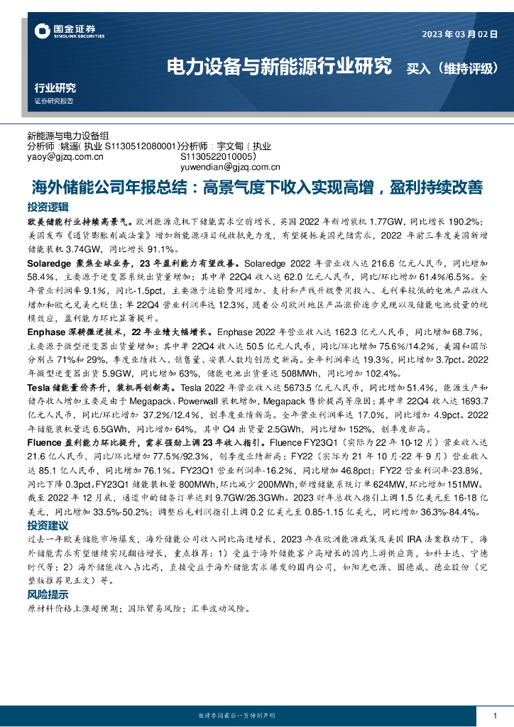 国金证券:海外储能公司年报总结:高景气度下收入实现高增,盈利持续改善.pdf