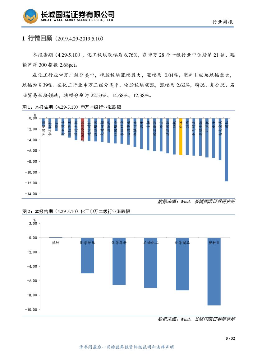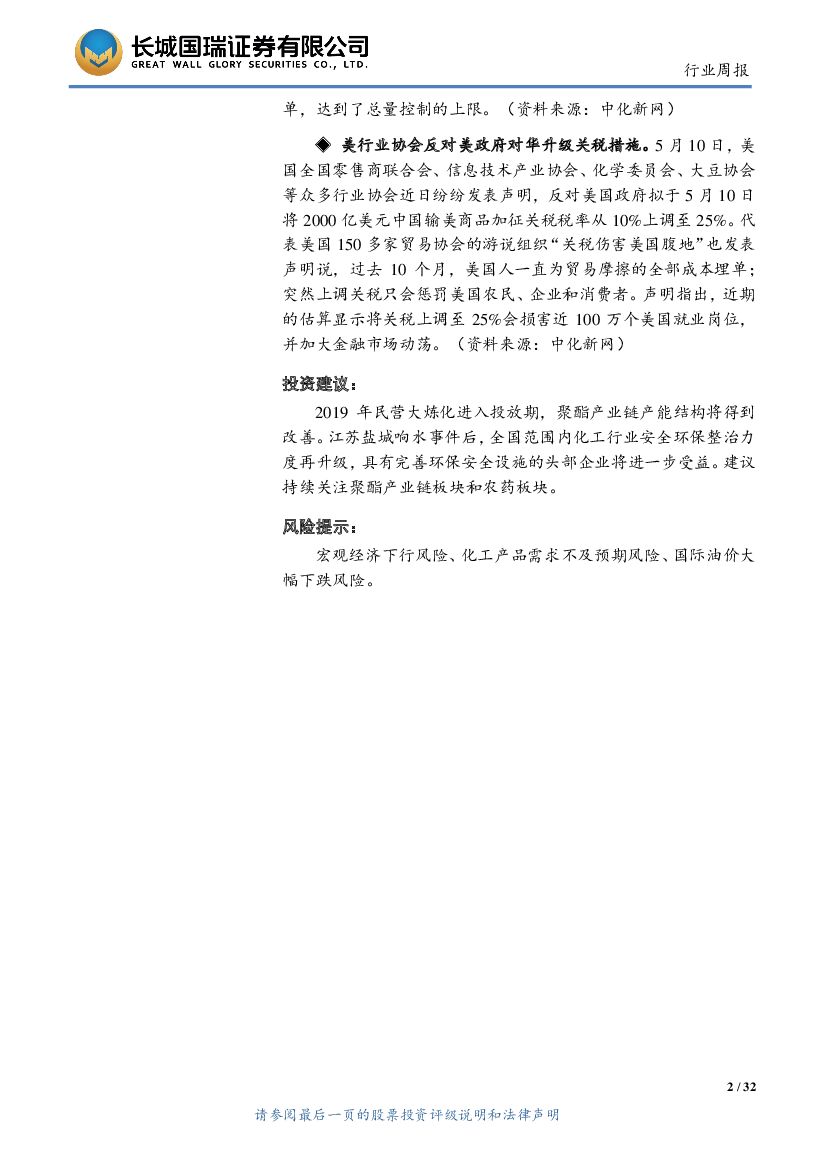 长城国瑞证券:化工行业双周报2019年第9期(总第9期):TDI价格进入上升通道,4月份化学原料和制品价格环比由降转.pdf