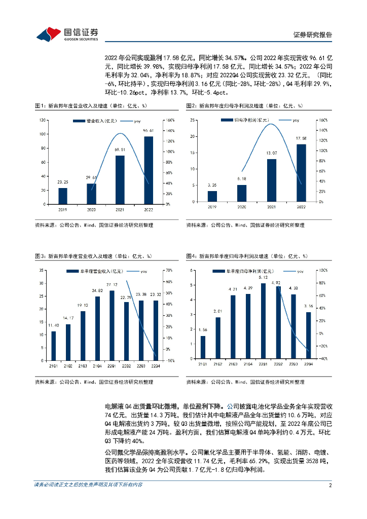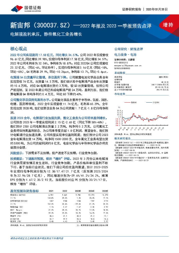 国信证券:新宙邦(300037)-2022年报及2023一季报预告点评:电解液盈利承压,静待氟化工业务增长.pdf
