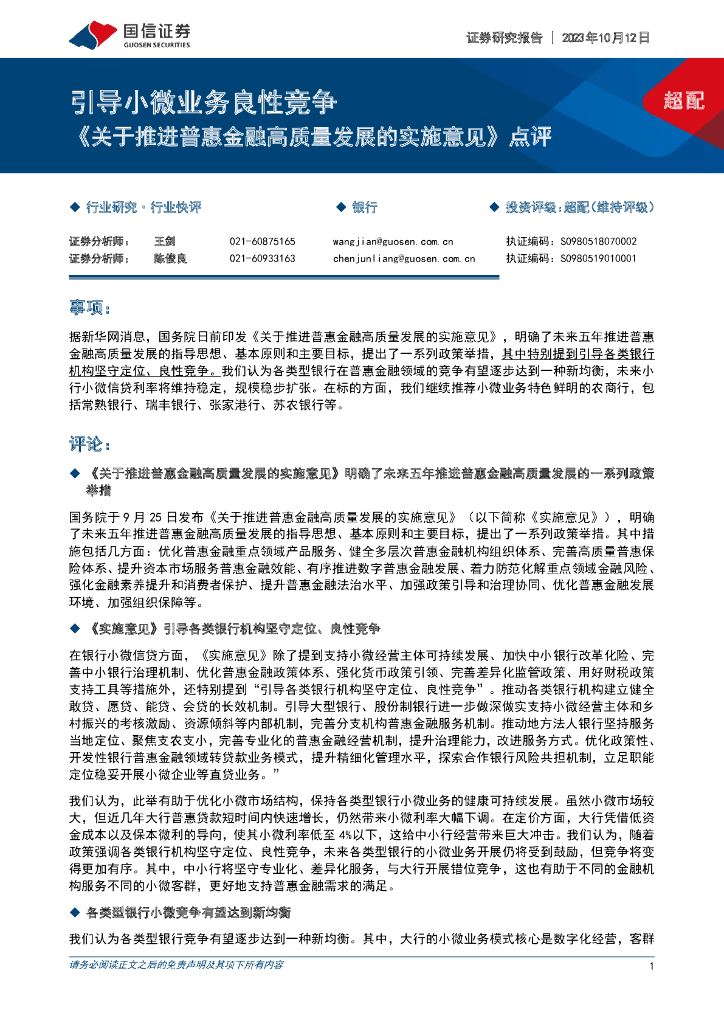 国信证券:《关于推进普惠金融高质量发展的实施意见》点评:引导小微业务良性竞争.pdf