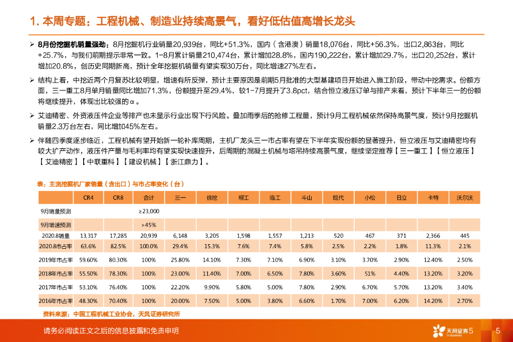 天风证券:机械设备行业研究周报:工程机械、制造业持续高景气,看好低估值高增长龙头.pdf
