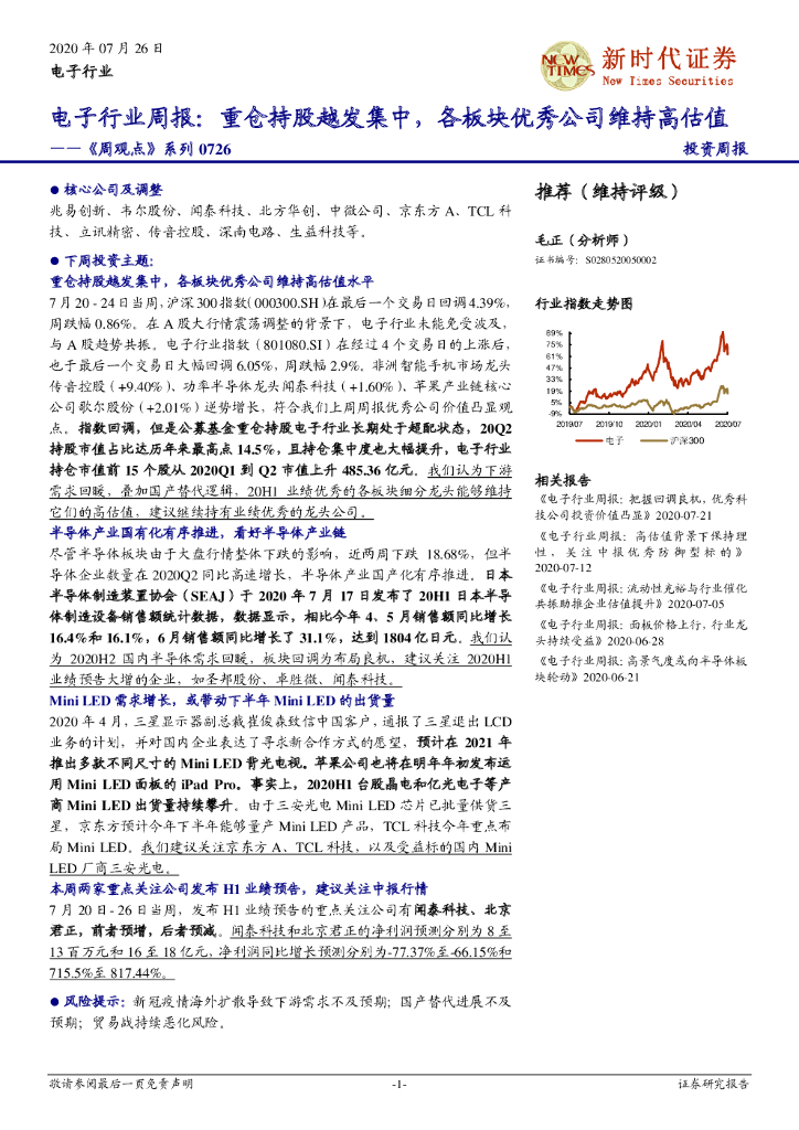 新时代证券:电子行业周报:重仓持股越发集中,各板块优秀公司维持高估值——《周观点》系列.pdf