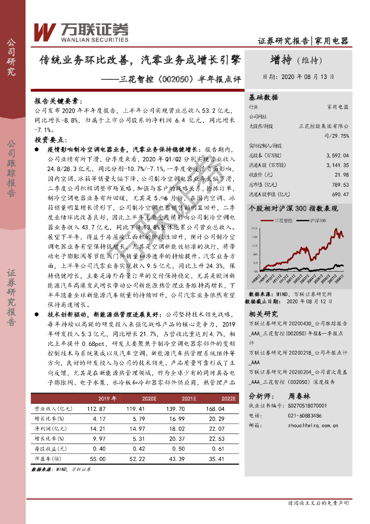 万联证券:三花智控(002050)-半年报点评:传统业务环比改善,汽零业务成增长引擎.pdf