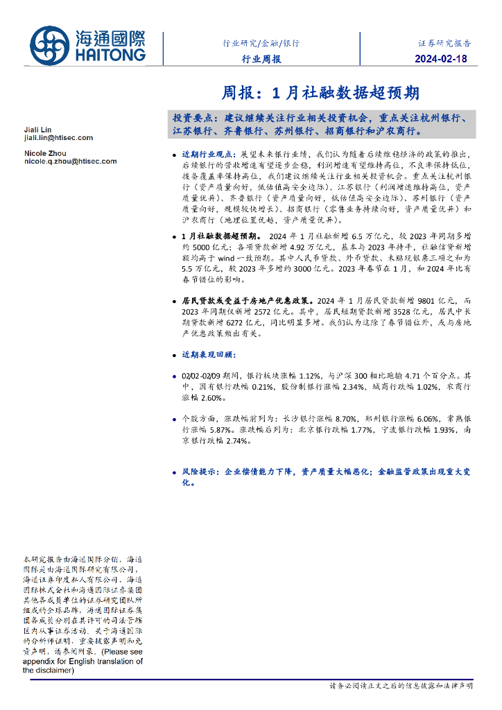 海通国际:银行行业周报:1月社融数据超预期.pdf