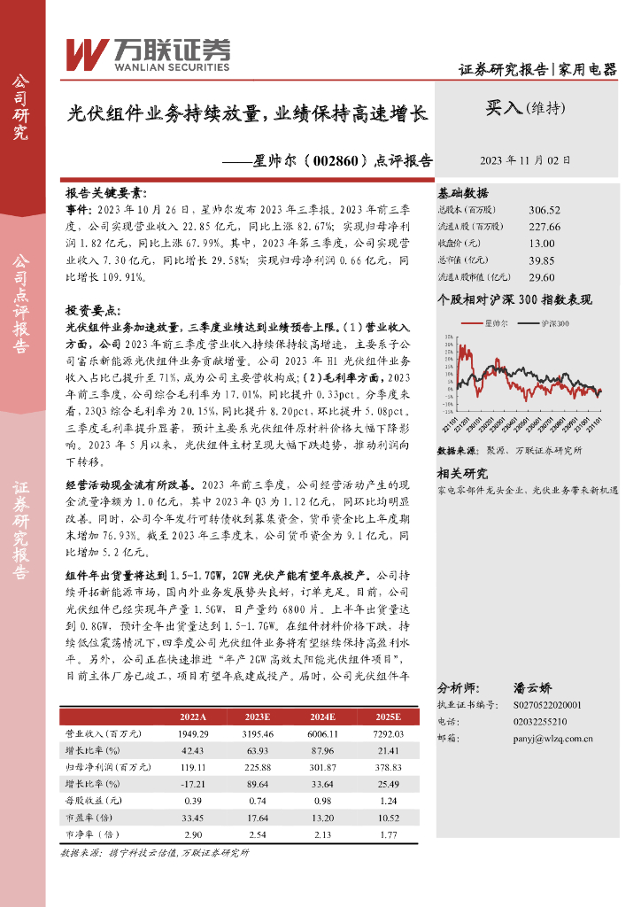 万联证券:星帅尔(002860)-点评报告:光伏组件业务持续放量,业绩保持高速增长.pdf