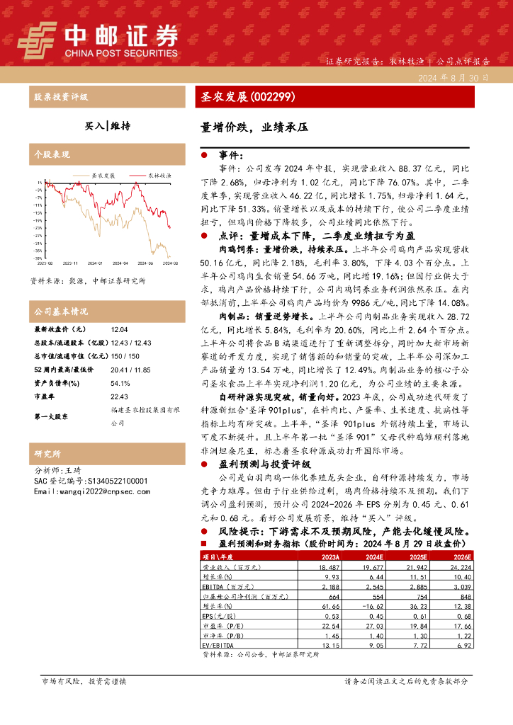 中邮证券:圣农发展(002299)-量增价跌,业绩承压.pdf