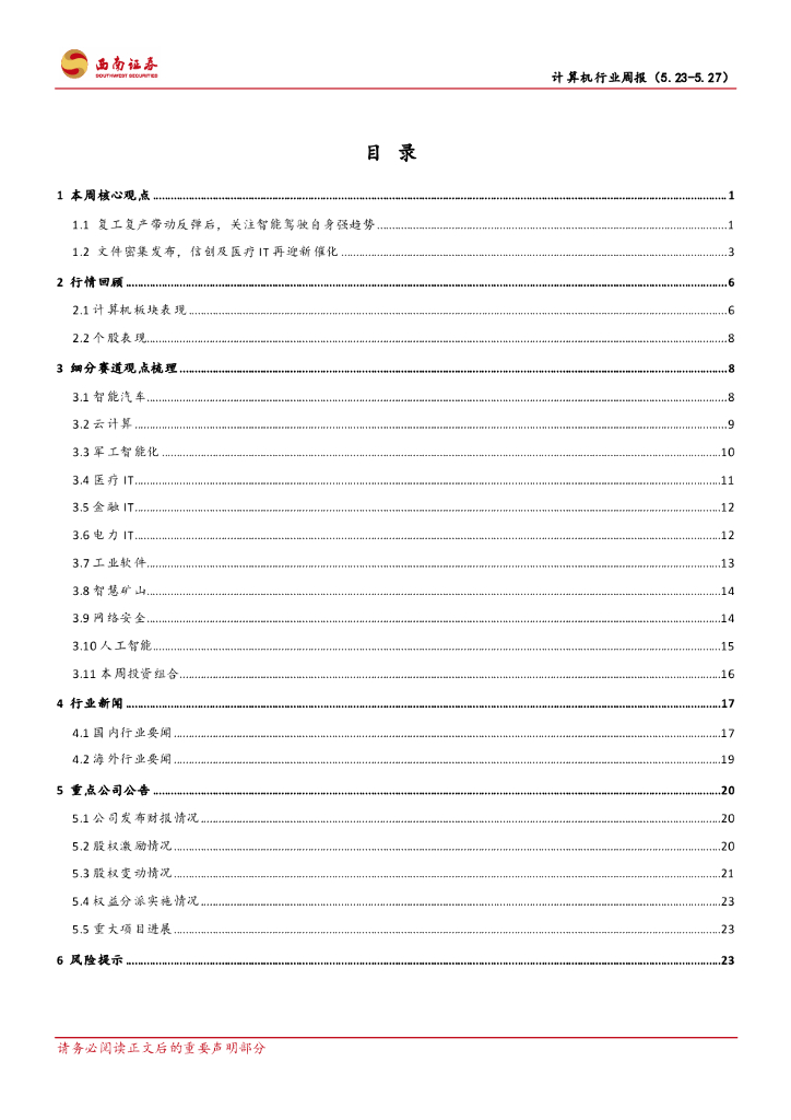 西南证券:计算机行业周报:智能汽车反弹有望延续,关注信创及医疗IT新催化.pdf