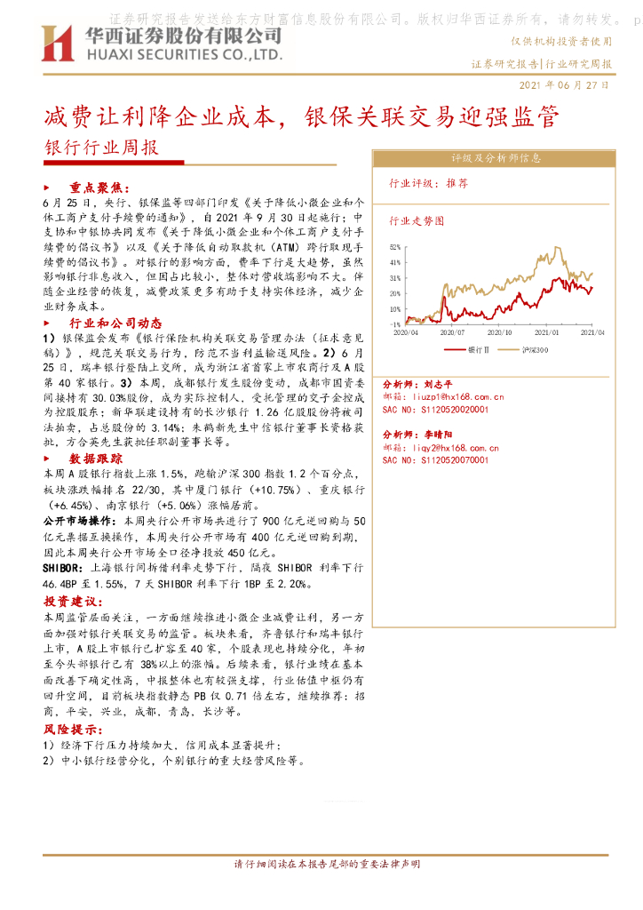 华西证券:银行行业周报:减费让利降企业成本,银保关联交易迎强监管.pdf