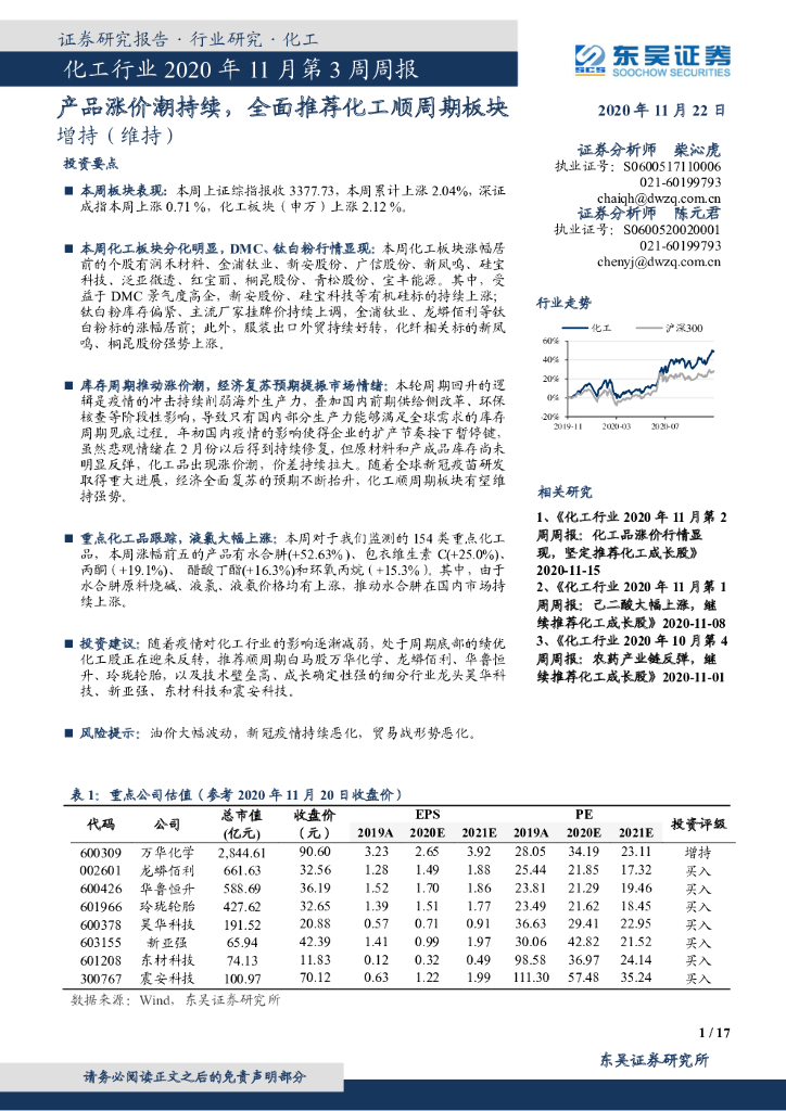 东吴证券:化工行业2020年11月第3周周报:产品涨价潮持续,全面推荐化工顺周期板块.pdf