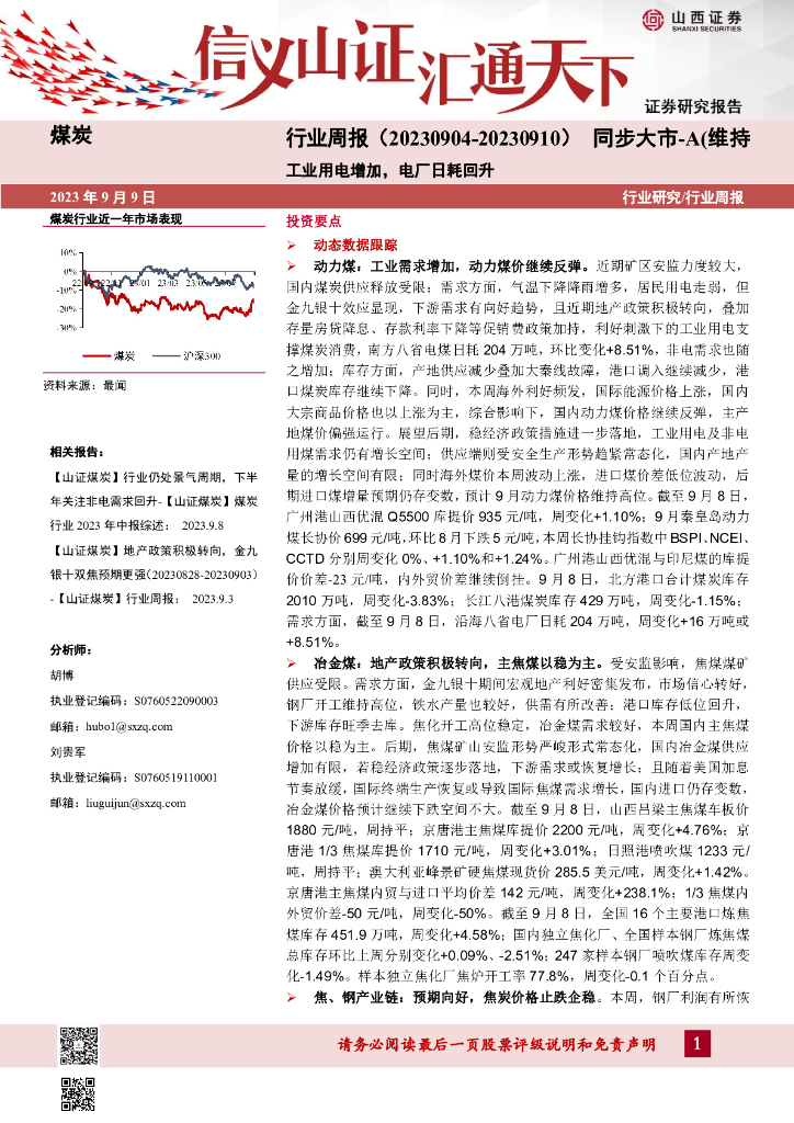 山西证券:煤炭行业周报:工业用电增加,电厂日耗回升.pdf