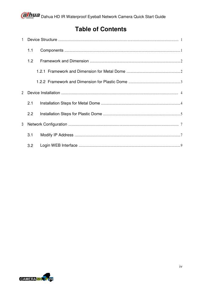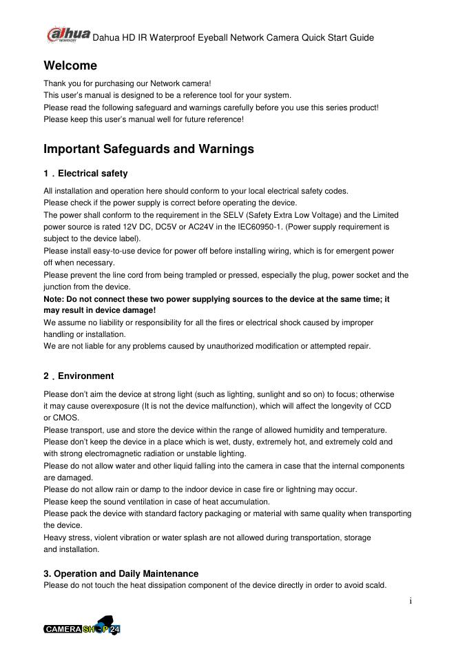 Dahua HD IR Waterproof Eyeball Network Camera快速安装指南.pdf