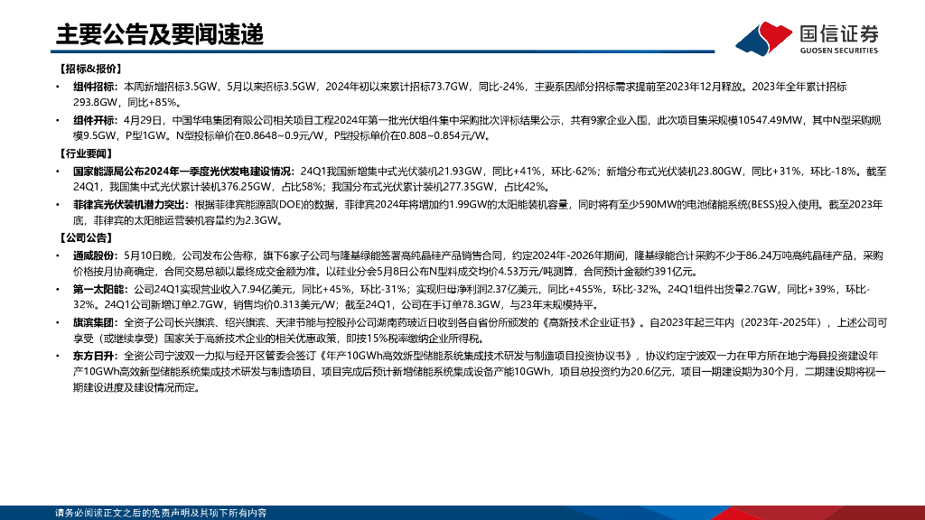 国信证券:光伏产业链周评(5月第2周):通威隆基锁定超300GW硅料长单,硅料价格持续探底.pdf