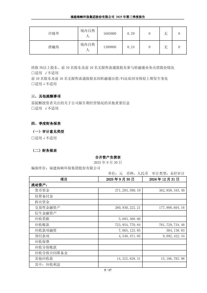 603817-海峡环保:海峡环保2025年第三季度报告.pdf