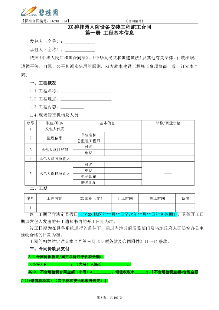 人防设备安装工程施工合同范本.doc