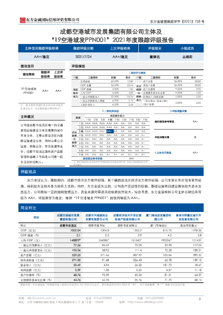 东方金诚:成都空港城市发展集团有限公司主体评级报告.pdf