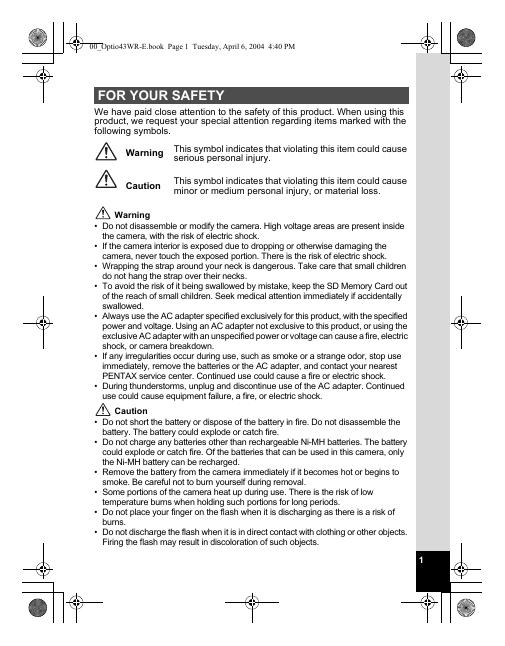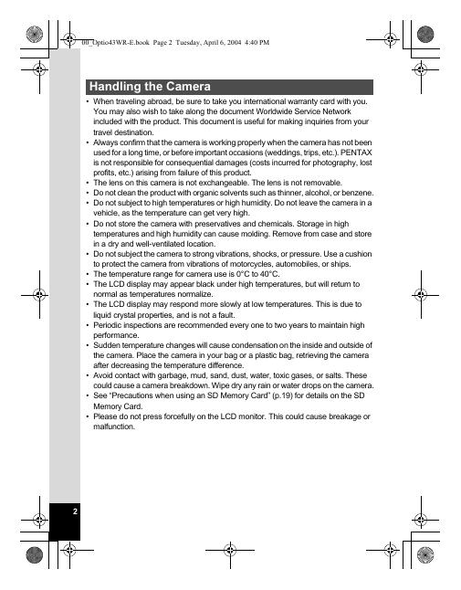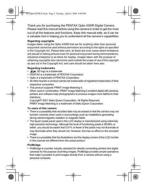 PENTAX Optio 43WR 数码相机 操作手册.pdf