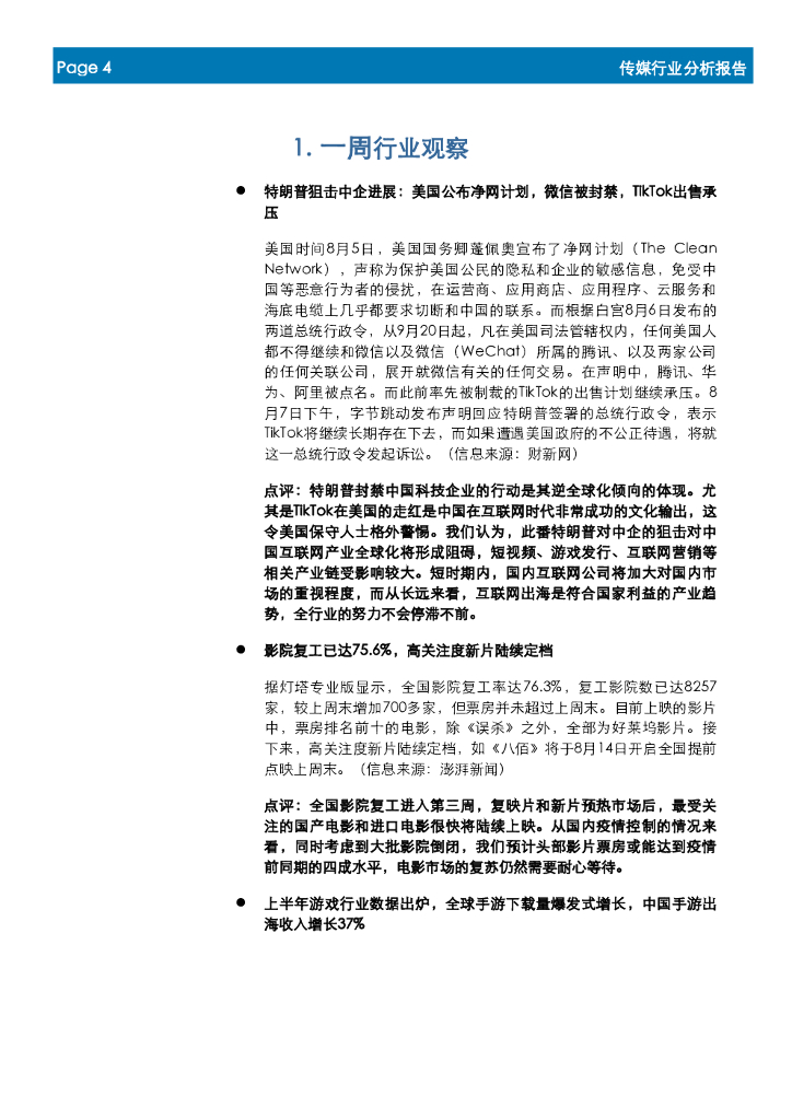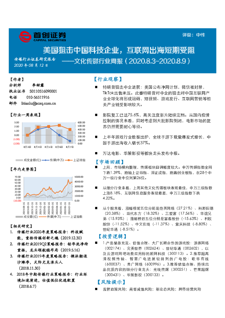 首创证券:文化传媒行业周报:美国狙击中国科技企业,互联网出海短期受阻.pdf