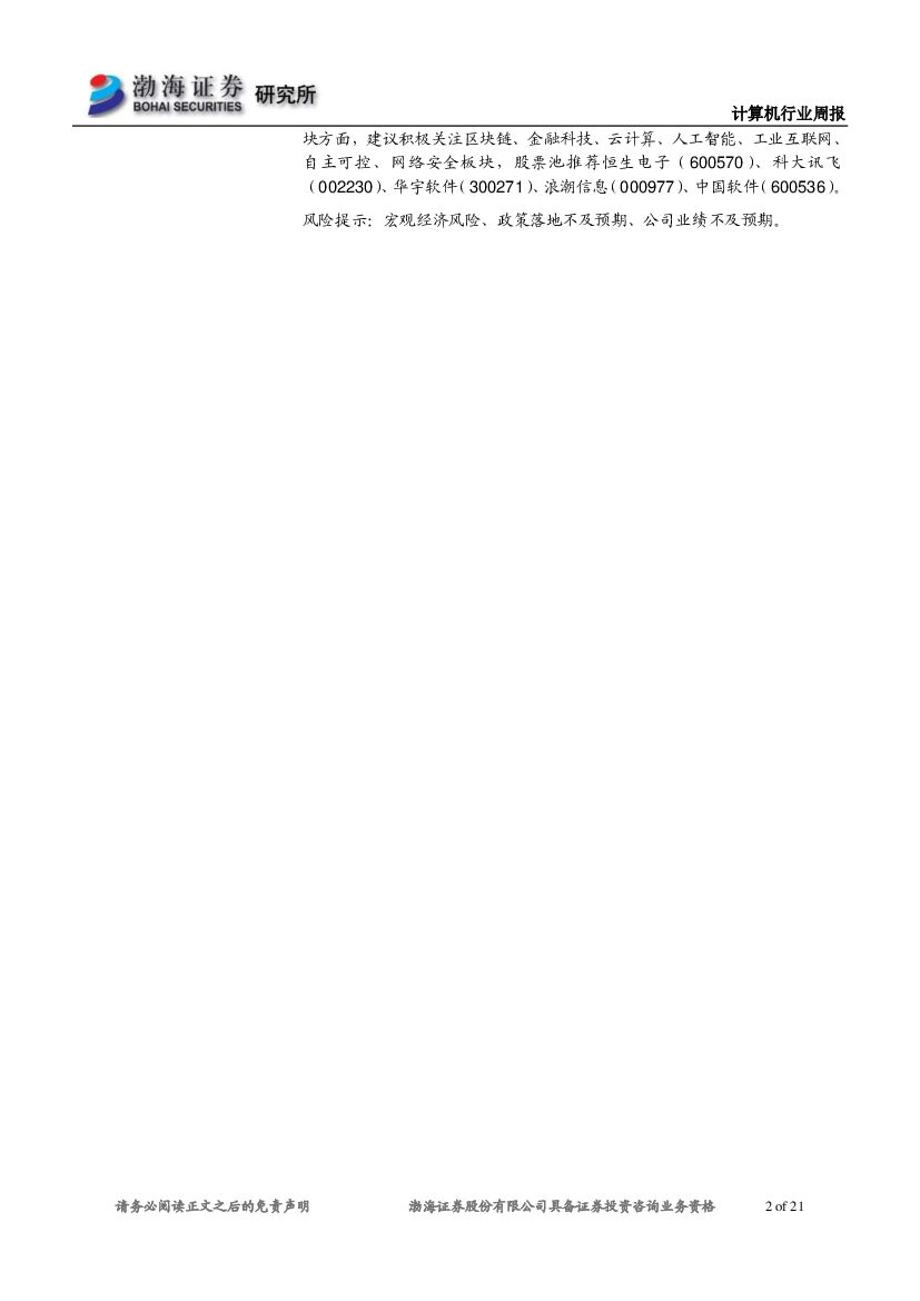 渤海证券:计算机行业周报:区块链建设将成为明星领域,行业有望充分受益.pdf