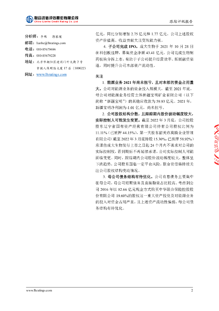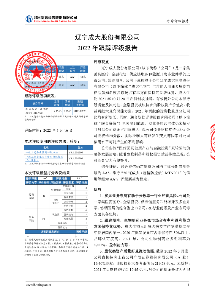 联合资信:辽宁成大股份有限公司2022年跟踪评级报告.pdf