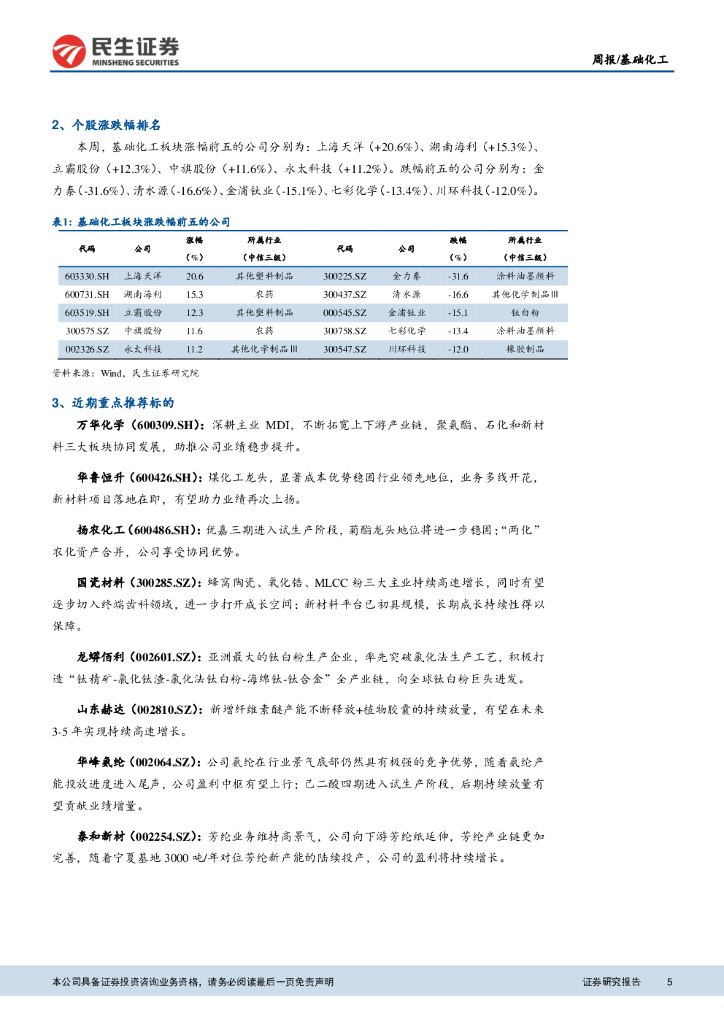 民生证券:基础化工周报:万华MDI挂牌价环比不变,看好MDI景气持续.pdf