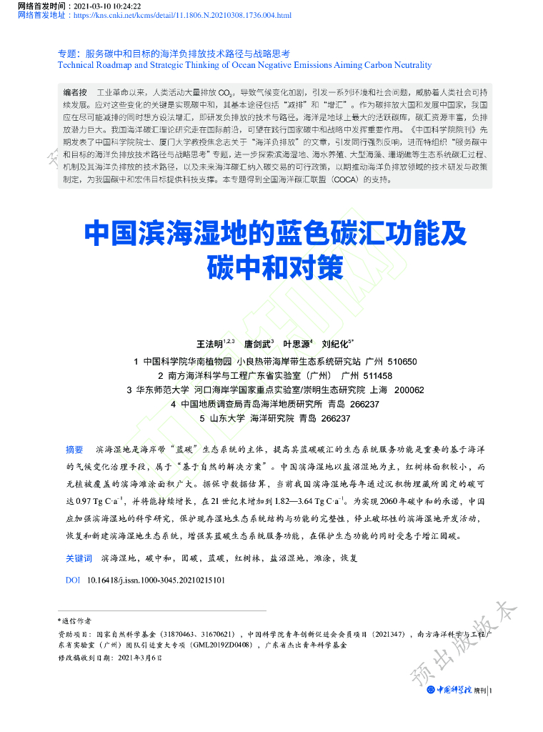 中国滨海湿地的蓝色碳汇功能及碳中和对策.pdf