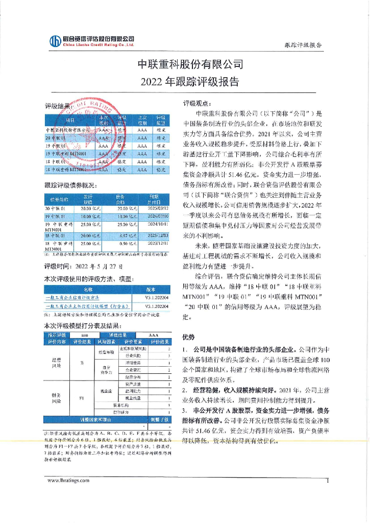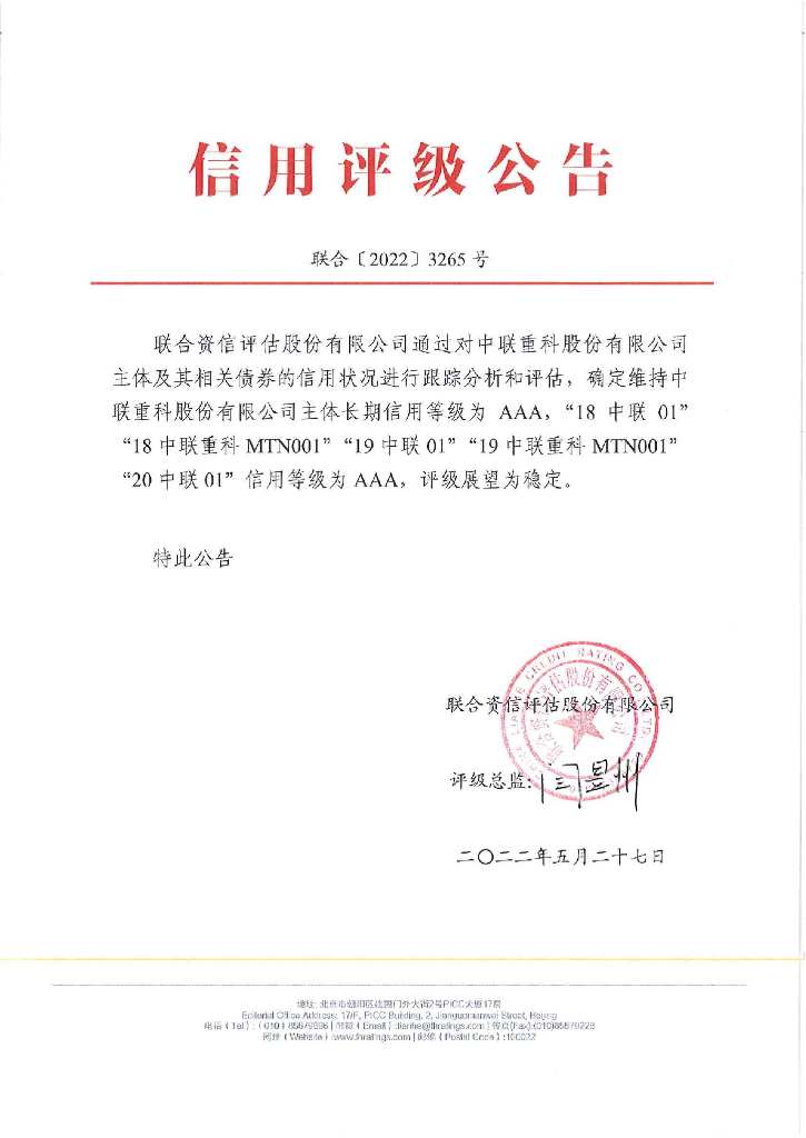 联合资信:中联重科股份有限公司2022年跟踪评级报告.pdf
