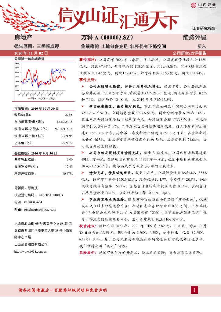 山西证券:万科A(000002)-业绩稳健 土地储备充足 杠杆仍有下降空间.pdf