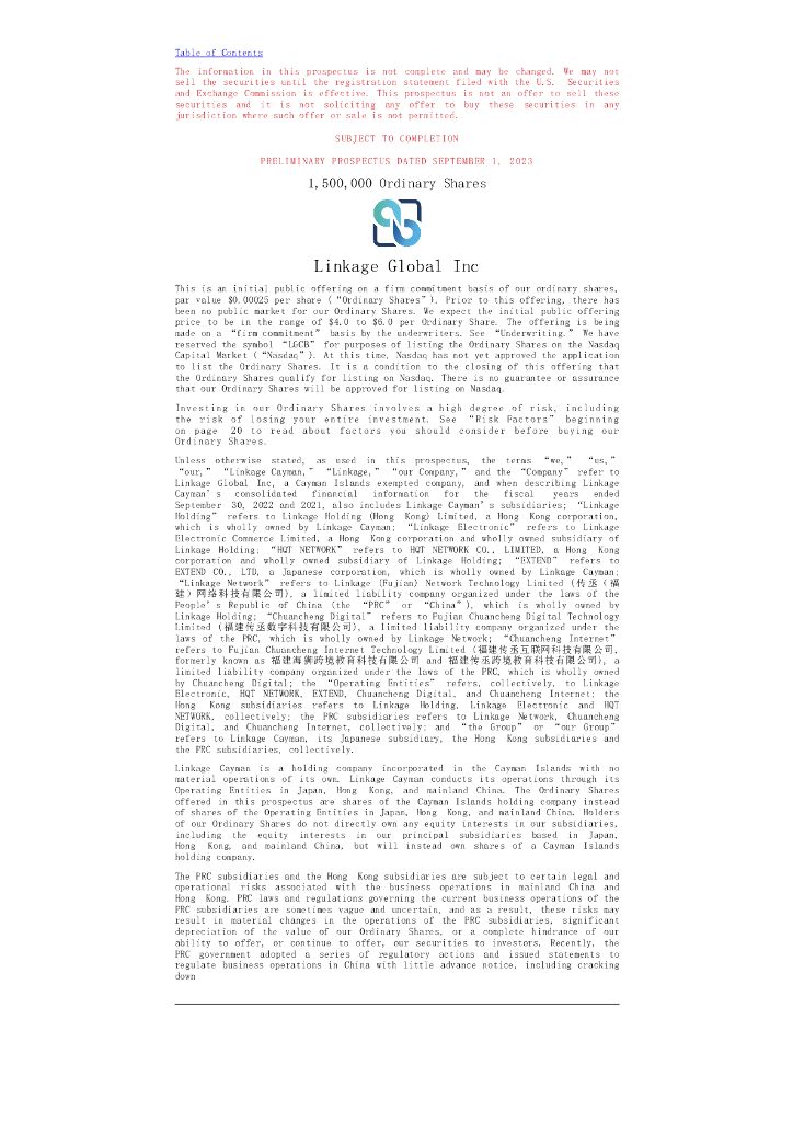 Linkage传丞LGCB美股IPO上市招股说明书.pdf