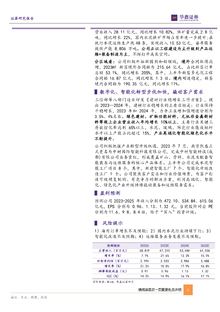 华鑫证券:中材国际(600970)-公司动态研究报告:Q2平稳增长,静待高增长订单结转.pdf