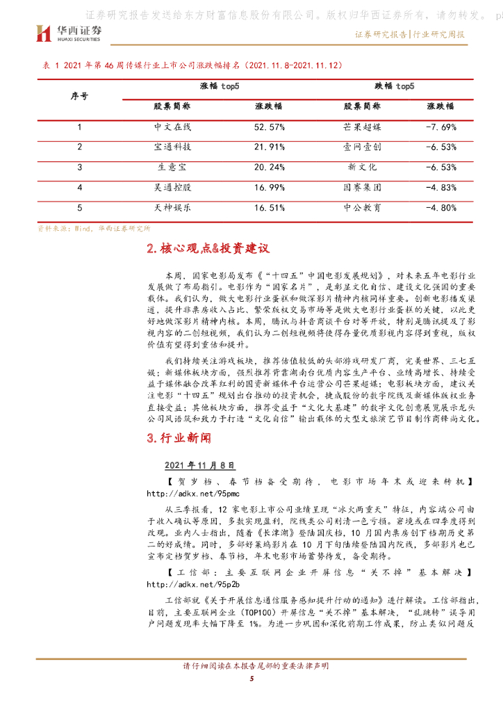华西证券:传媒行业周报系列2021年第46周:电影“十四五”规划发布,抖腾商谈对等开放.pdf