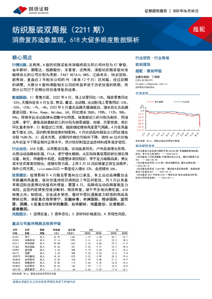 国信证券:纺织服装双周报(2211期):消费复苏迹象显现,618大促多维度数据解析.pdf