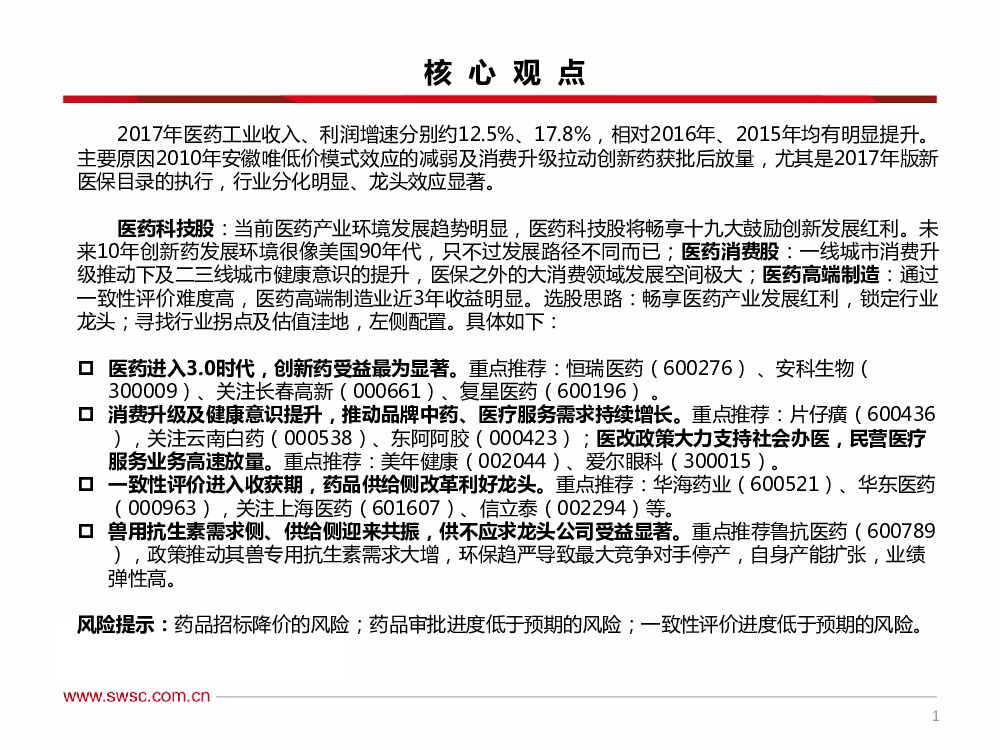 西南证券:医药行业2018年春季投资策略:医药3.0时代,聚焦医药子行业龙头.pdf