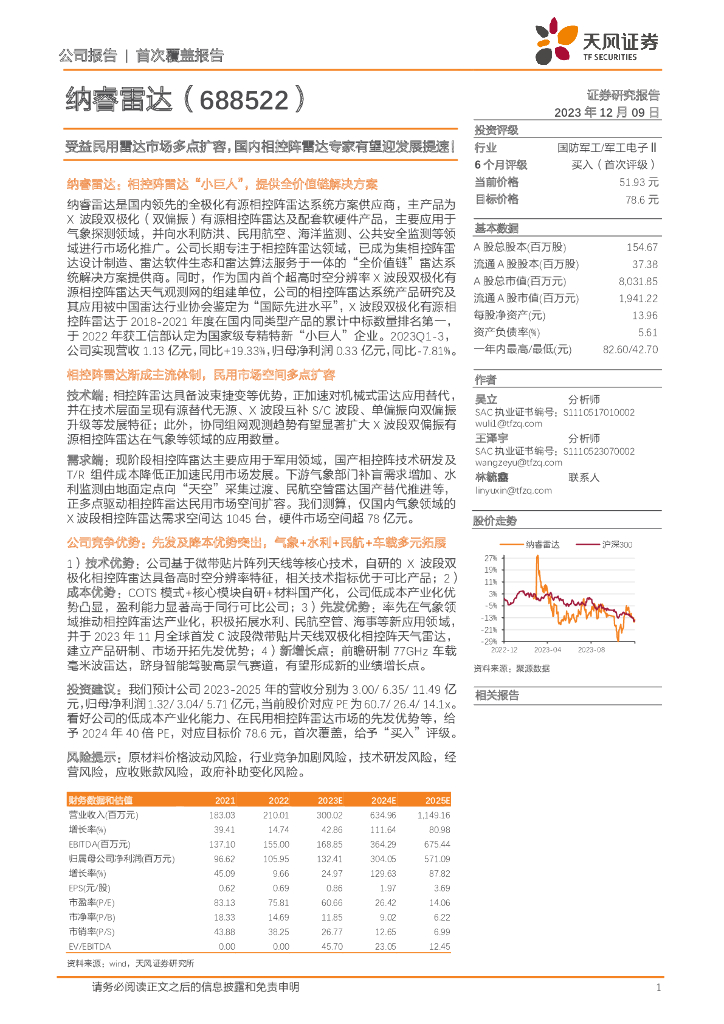天风证券:纳睿雷达(688522)-受益民用雷达市场多点扩容,国内相控阵雷达专家有望迎发展提速!.pdf