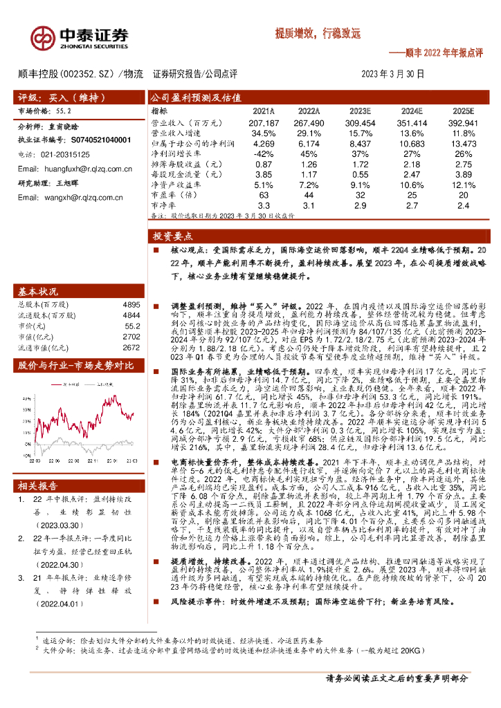 中泰证券:顺丰控股(002352)-顺丰2022年年报点评:提质增效,行稳致远.pdf