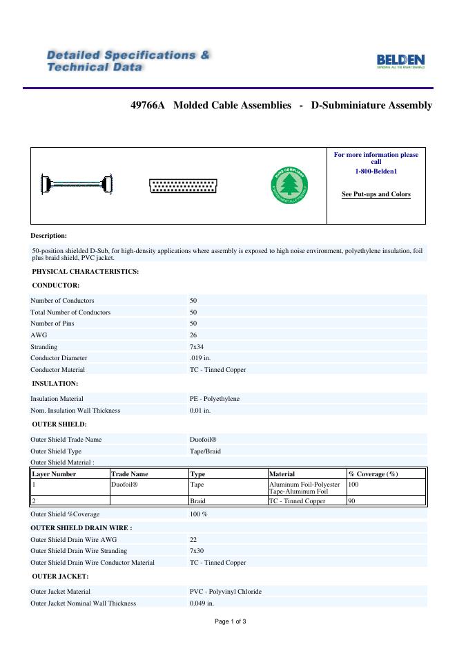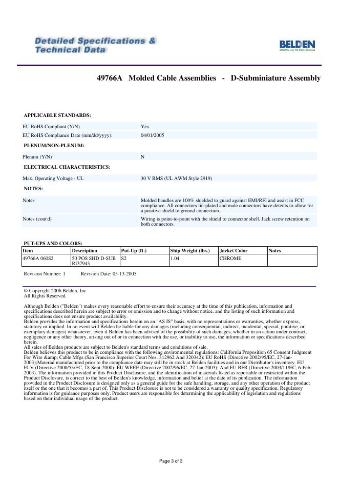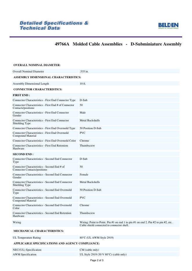 BELDEN 49766A Molded Cable Assemblies - D-Subminiature Assembly 数据手册.pdf