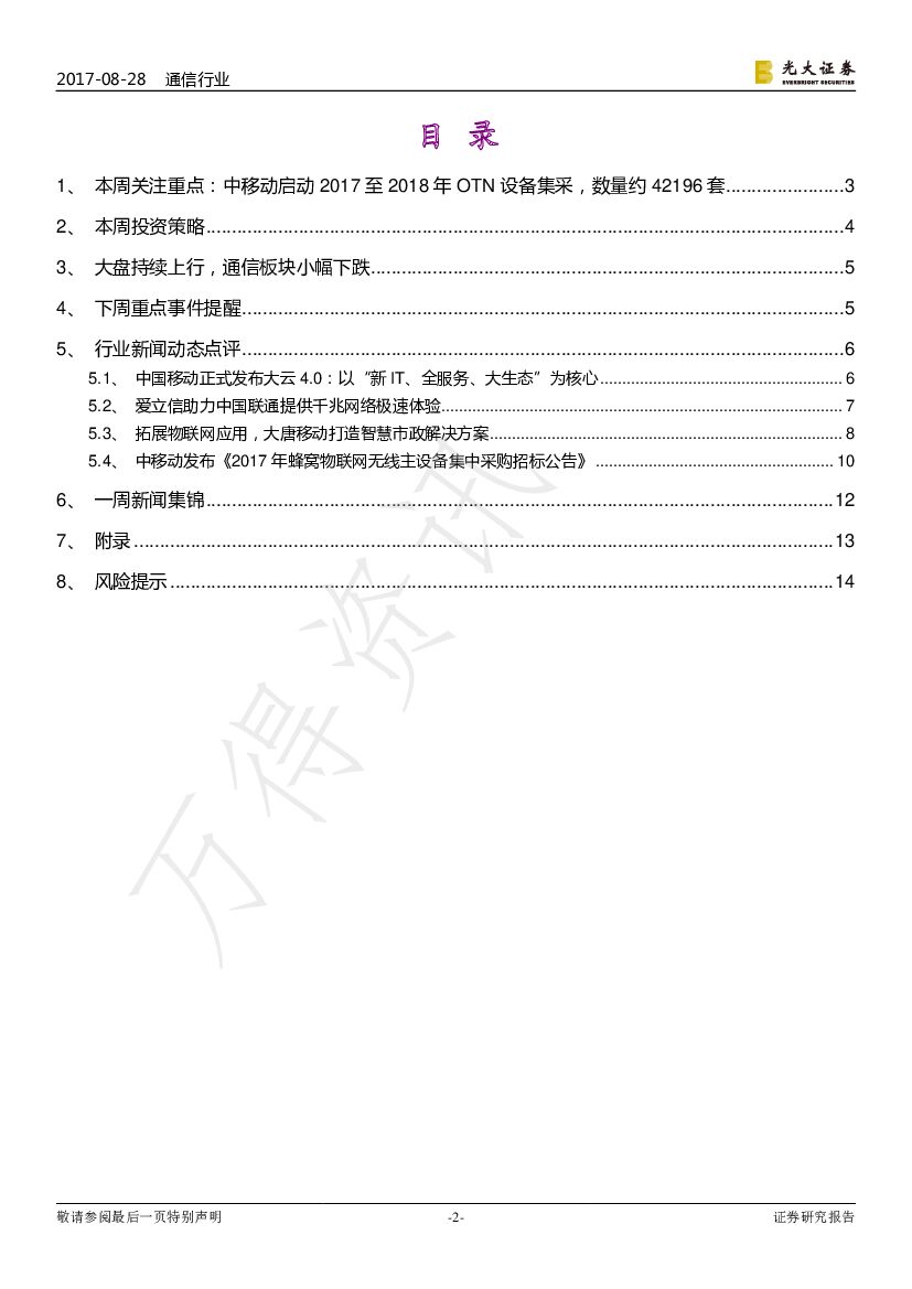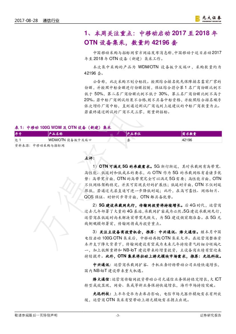光大证券:通信行业周报:中移动启动OTN设备集采,关注主设备商投资机会.pdf