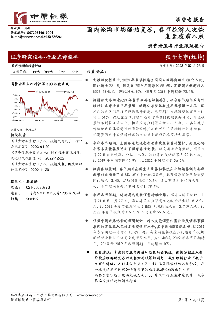 中原证券:消费者服务行业跟踪报告:国内旅游市场强劲复苏,春节旅游人次恢复至疫前八成.pdf