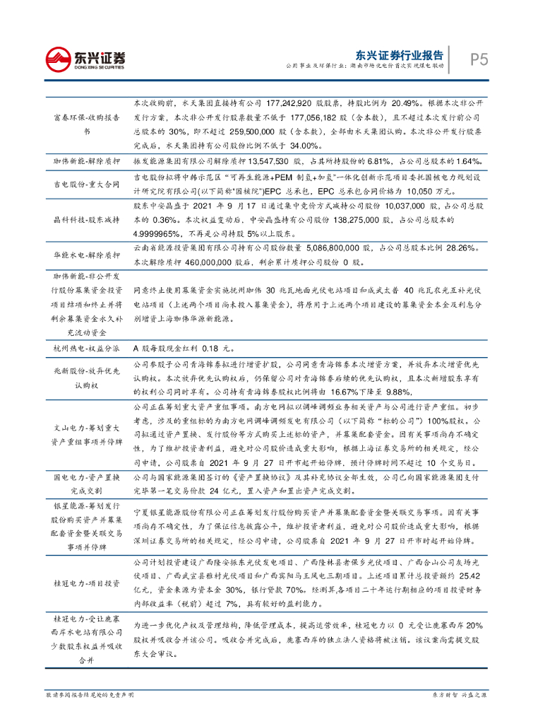 东吴证券:环保行业跟踪周报:【高能环境】受益金属价格上涨,【龙净环保】矿山绿电贡献业绩,重视水固红利价值