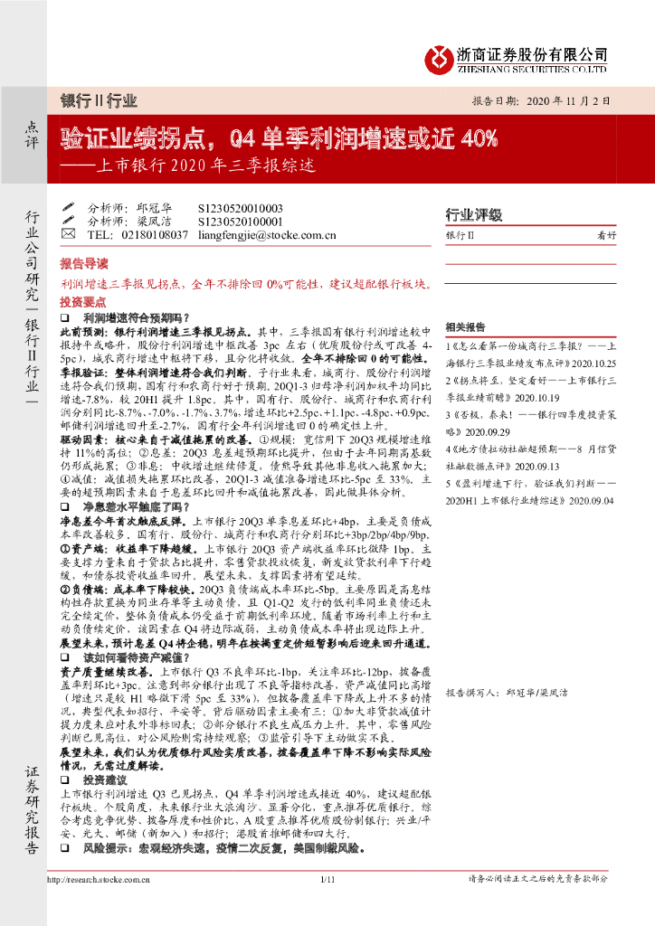 浙商证券:上市银行2020年三季报综述:验证业绩拐点,Q4单季利润增速或近40%.pdf